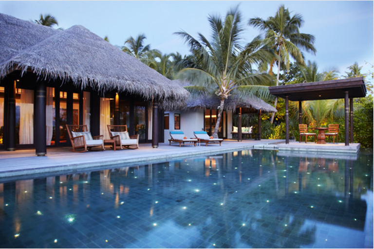 建立在美麗的礁湖上,有一塊私人甲板,您可直接躍入碧藍的海洋。別墅內(nèi)有一間寬廣的浴室,光亮的玻璃面對廣闊的印度洋,使您身心徜徉。