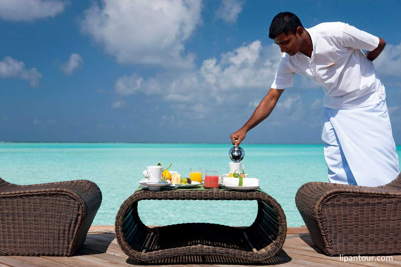 豪華木質(zhì)的優(yōu)雅裝飾,高級(jí)水上別墅讓您擁有在天堂之中的無(wú)窮享受,它以一個(gè)寬闊的日光臺(tái)板為特色,這是一覽緩緩落日的理想位置。