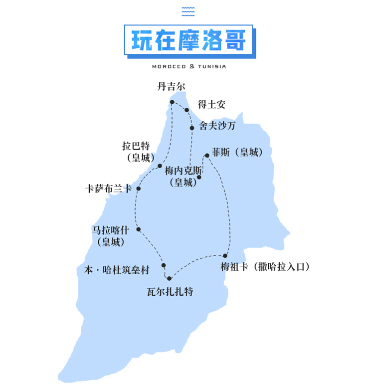 2. 摩洛哥各城市之間的車程時間較長.建議游客攜帶靠枕,零食,視聽設備以緩解旅途疲勞.